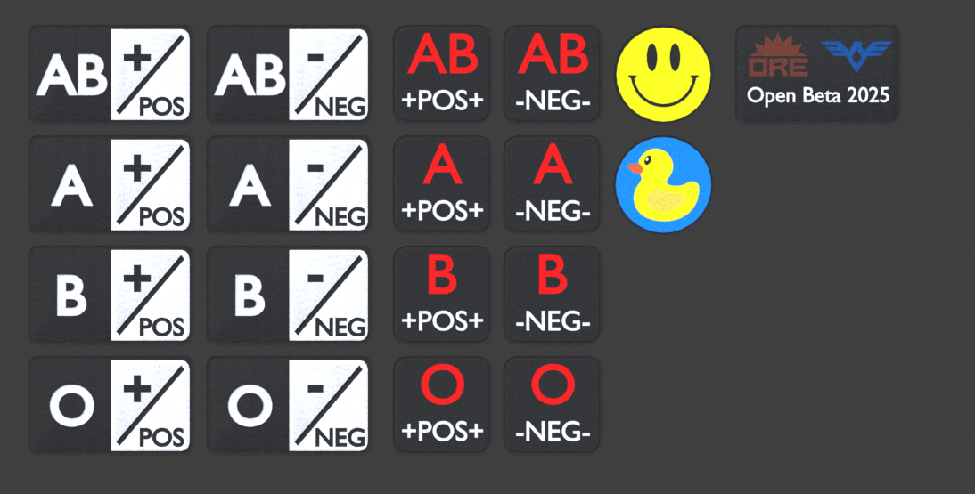- blood types (A+, A-, B+, B-, AB+, AB-, O+, and O)