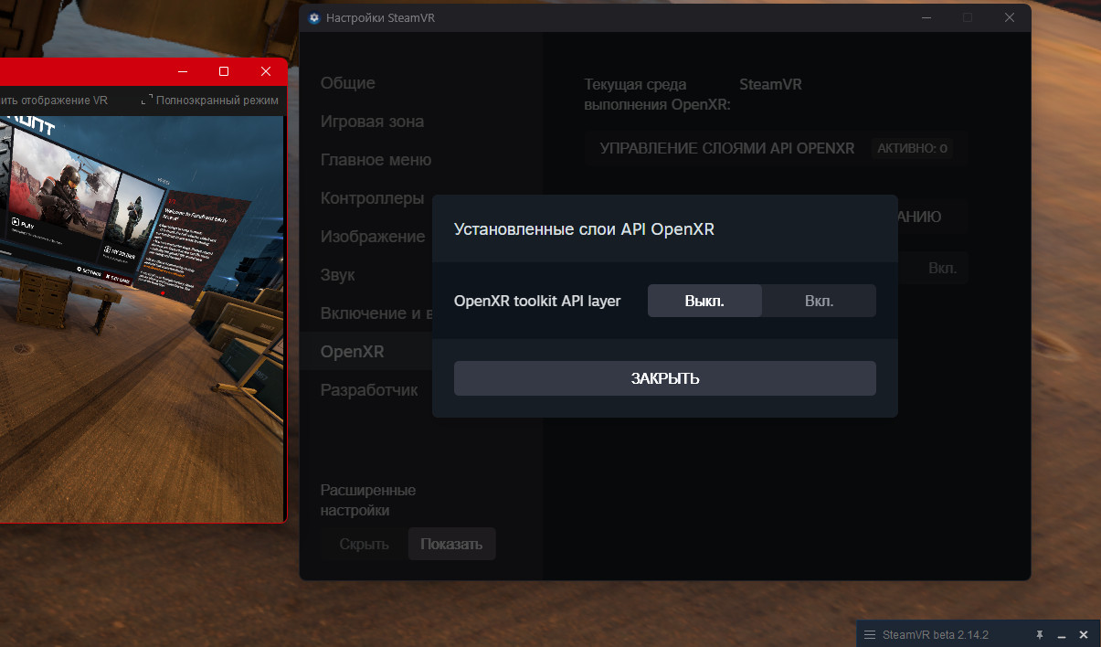 - Also be sure to check your SteamVR XR API Layer settings and disable any layers that are displayed as active there