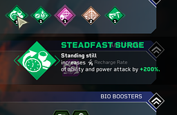 Steadfast Surge (standing still increases recharge rate of ability and power attack by (+number%) doesnt reduce Retcon's ability cooldown.
