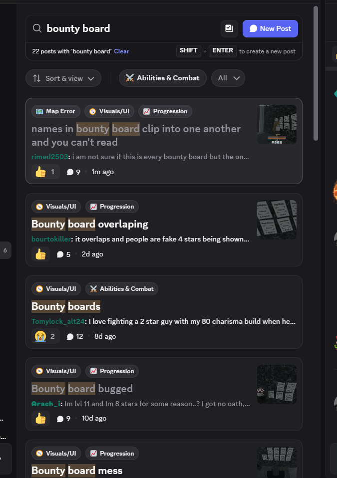shouldn't there be a tab called bug reports then because anything i report is known and i get put on a 40 minute cooldown and cant post the other bugs i've encountered