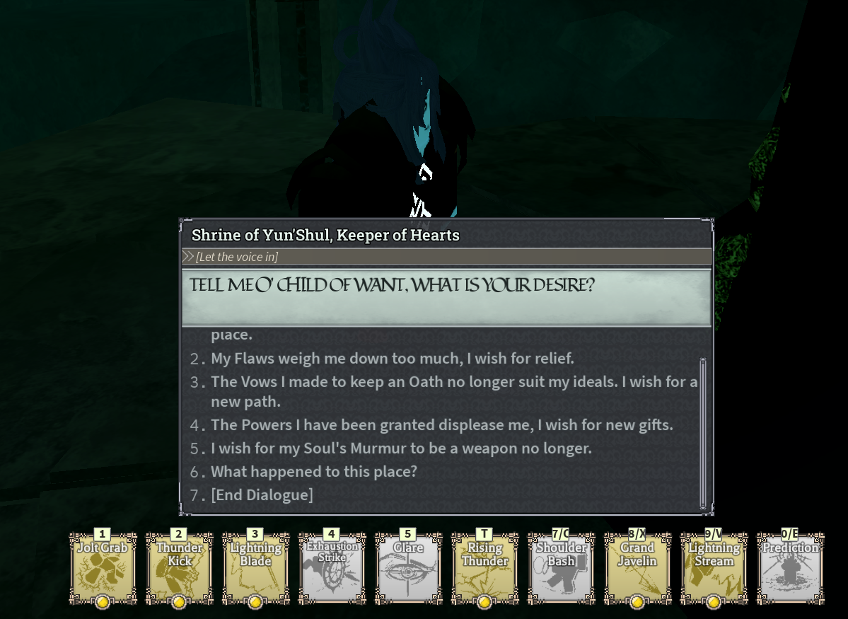 thats my only option to respond to him but i cannot speak to yunshul despite spamming like every single deep shrine