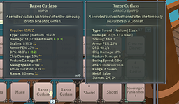 these two razor cutlassess are the same identical weapon; no stars, no enchant, same stats. But the left razor cutlass displays 6.3 more damage than the one i have equipped.