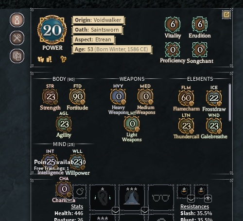 Wipe your build, saintsworn is 15 across the board go save some investment points