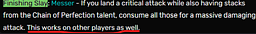 The talent description SAYS that it works in pvp. It is clearly designed and intended to function that way because if I play against a visionshaper user in chime I can build stacks and eventually use them on the player when I land my critical. The reason it doesn't work is because you cannot build chain stacks in pvp. It would not be broken to fix this bug because 1) messer is already a terrible weapon and 2) requires someone to play perfectly in order to proc it. If this bug were to be fixed it could possibly be abused to farm max chain of perfection stacks and then land a 150+ dmg critical, but this could easily be prevented by adding decay to the stacks you gain with this talent.