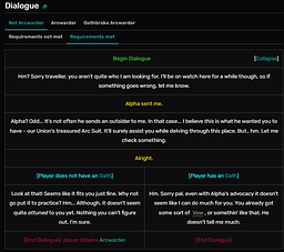 i did the full quest that dialogue is the right one when u meet the requirements and i click alright i dont get the oath as usual, yes i dont have an oath already.