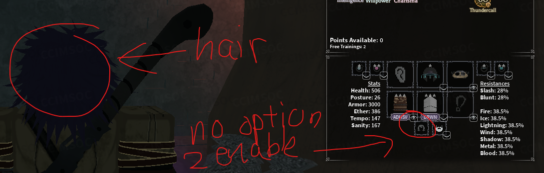 this looks like such a non issue without context but i genuinely just wanna be able to use my horns without being bald, slot and letter is above