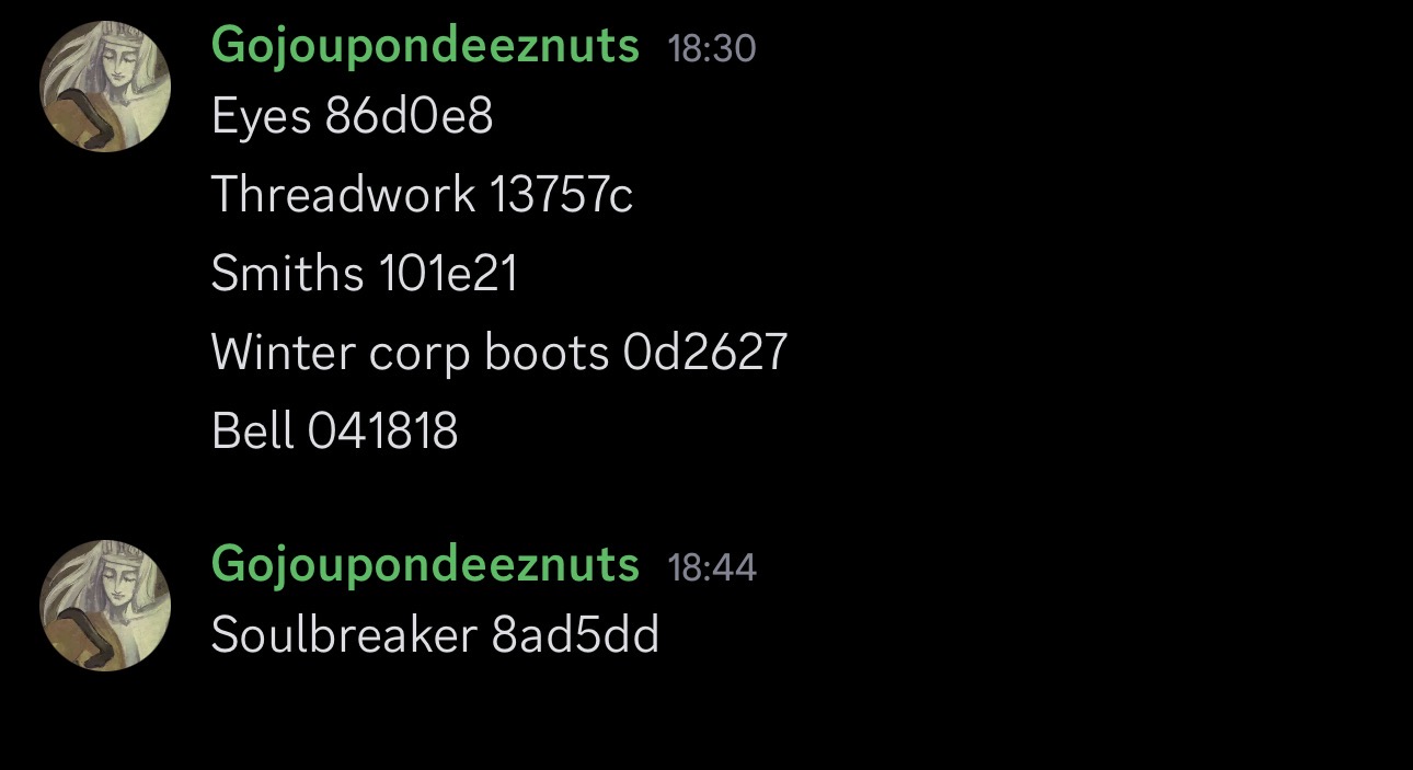 if it helps it was somewhere around when I started dying and equipping these items, do I screenshot them one by one?