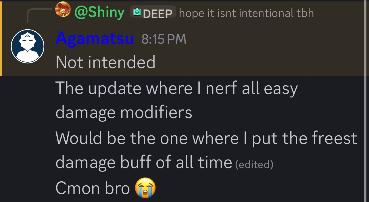 Funny how they nerf dmg modifiers and then shadow add a free dmg modifier but that one specifically doesnt affect mantras (0.02 dmg boost)