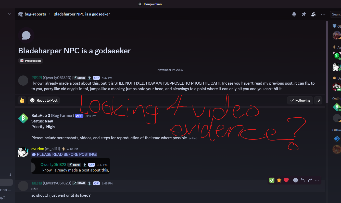 I know I already made a post about this, but it is STILL NOT FIXED. HOW AM I SUPPOSED TO PROG THE OATH. Incase you haven't read my previous post, it can fly, tp to you, parry like old angels in to1, jumps like a monkey, jumps onto your head, and airswings to a point where it can only hit you and you can't hit it