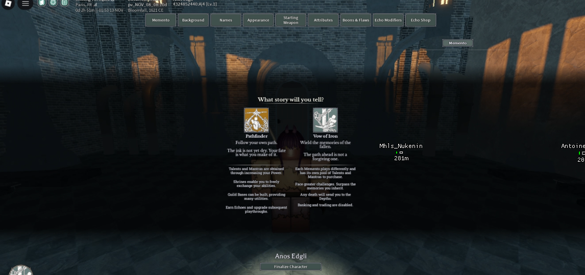 Iron Vow Picking Menu Popup Appears Briefly During New Character Creation